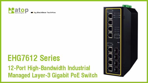 Designed to be adaptive, with unprecedented throughput: Atop’s EHG7612 Series offers several different making it a very flexible product based on your specific needs for Layer-3 Switching. No matter if the version, this device offers 4 x 1/10 Gigabit Ethernet SFP uplinks making it a cost-effective, reliable industrial solution where high-throughput and high-reliability is fundamental.